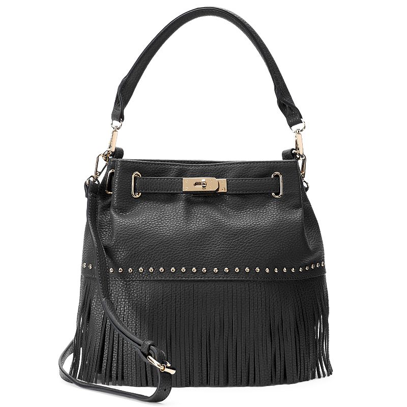 This boho-inspired handbag by Mellow World features fringe and studs